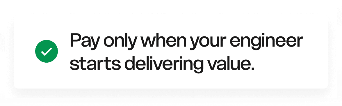 No placement fees, no upfront payments. Pay only when your engineer starts delivering value.